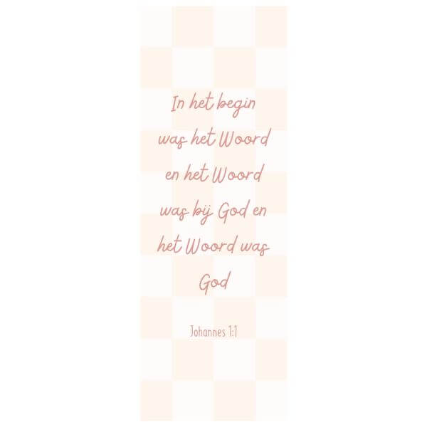 Boekenlegger met de tekst: In het begin was het Woord en het Woord was bij God en het Woord was God. Johannes 1:1