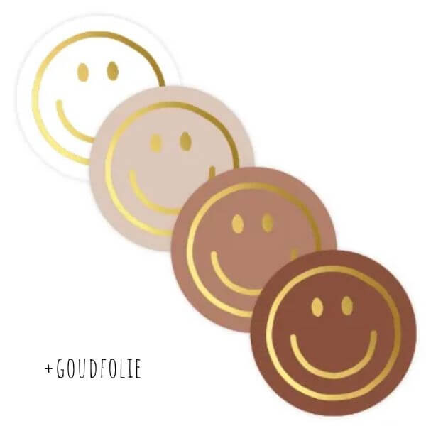 Toffe smiley stickers in vier verschillende kleuren zoals te zien op de afbeelding.